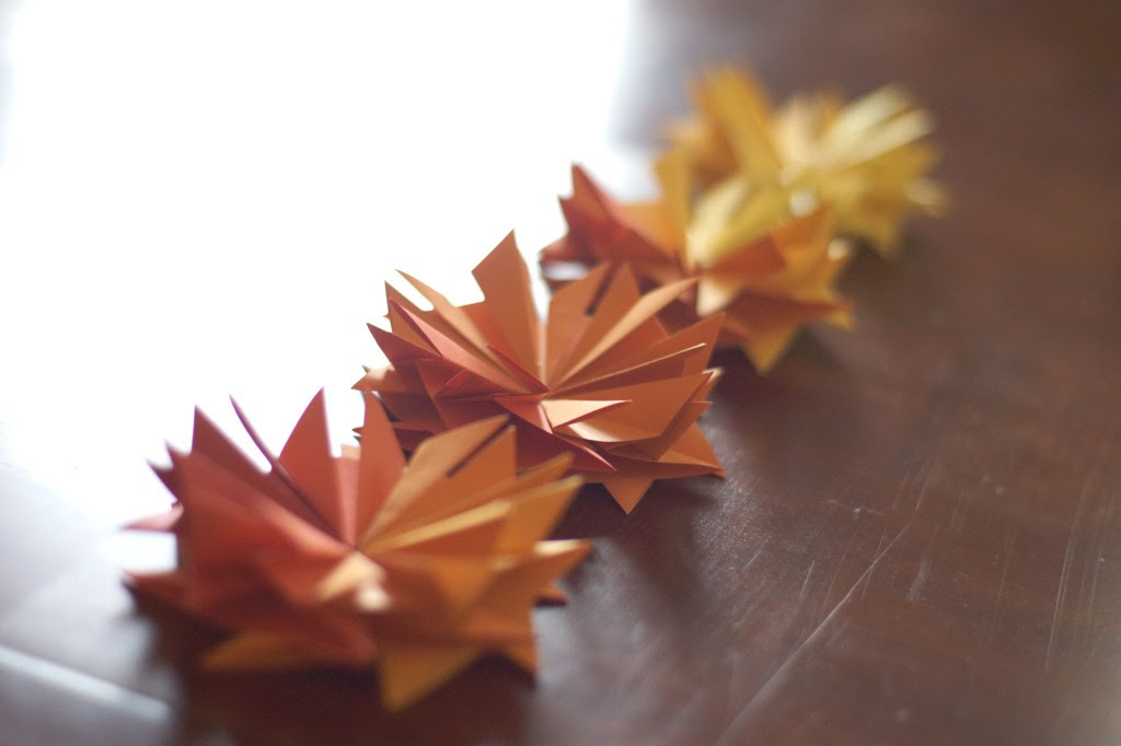 - Fold all the small circles in half. Glue them around the button (with the edge of each circle tucked under the button). I creased some all the way and some only slightly which make the latter petals appear more open—giving the flower an uneven look/texture.
